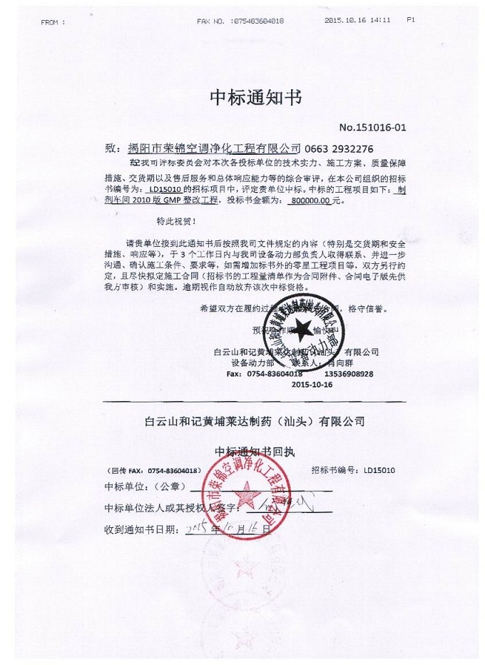 中標(biāo)喜訊---白云山和記黃埔萊達(dá)制藥制劑車(chē)間GMP改造工程